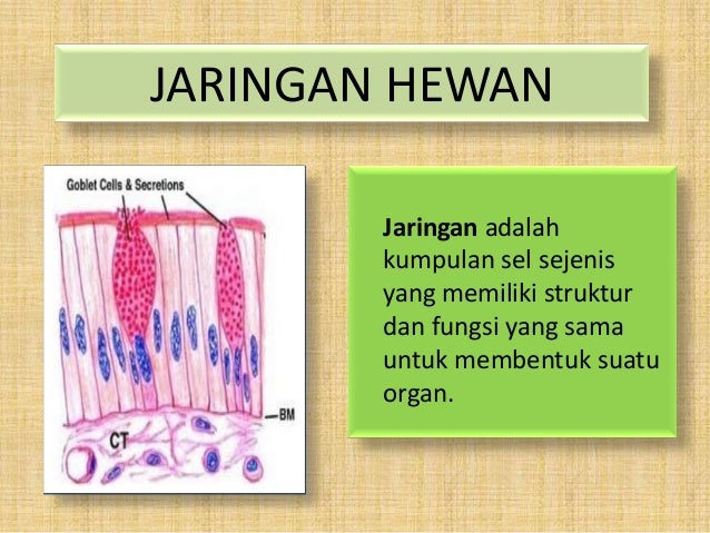 - Jaringan adalah kumpulan sel sejenis yang memiliki struktur dan fungsi yang sama untuk membentuk suatu organ. JARINGAN HEWAN